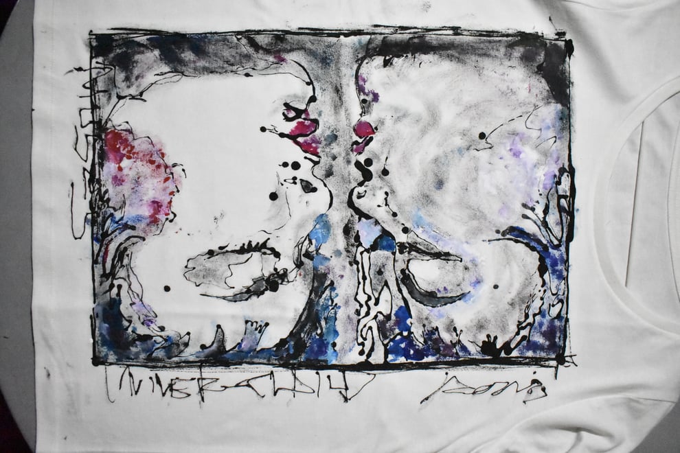 手描きのTシャツの前にこれまで描いた作品のピックアップから