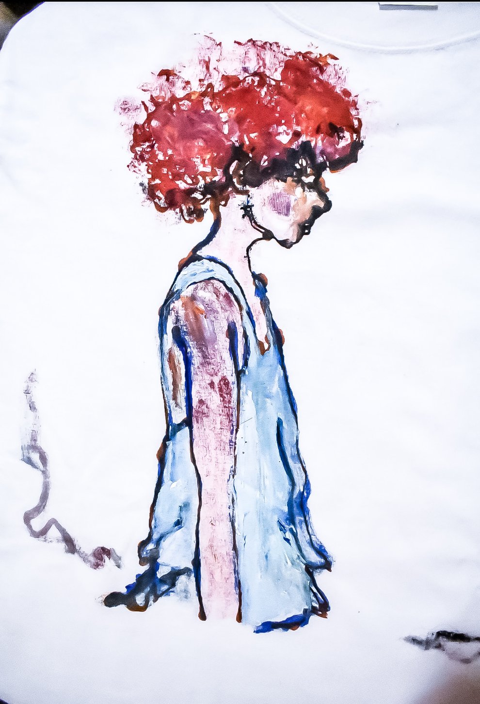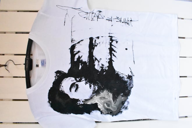 2019年に開催した二人展「haku」の時に制作した Tシャツの中の一枚 作品は写真で残しているし自分が手にかけたものだから 大体誰の手に渡ったのか覚えてたりする。 真っ白なTシャツのキャンバスに描く 正直絵はこれが一番しっくりいくし 絵のたたずまいも凛として見える。