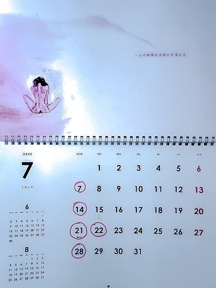 7月のお休み 07(月) 14(月) 21(月) 22(火) 28(月)